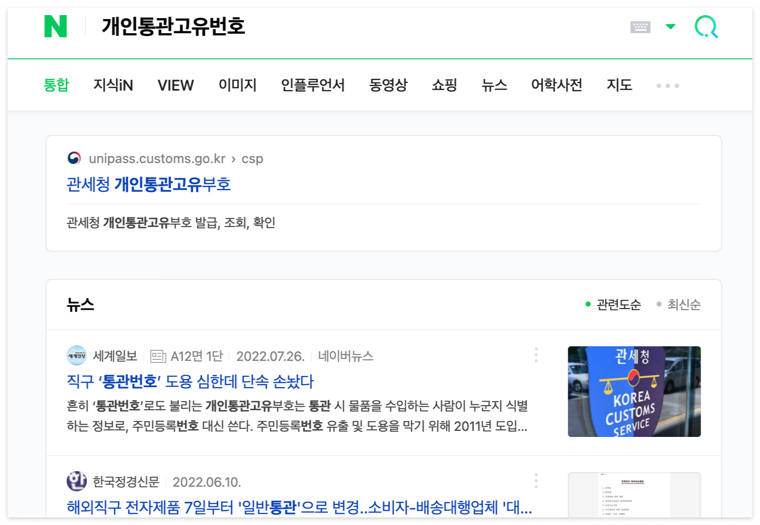 인터넷에 개인통관고유번호를 검색하여 사이트로 들어가세요. 정식 명칭은 '개인통관고유부호' 이지만 흔히들 '개인통관고유번호'라고 사용하기 때문에 번호라고 입력하셔도 관세청 사이트가 뜹니다.