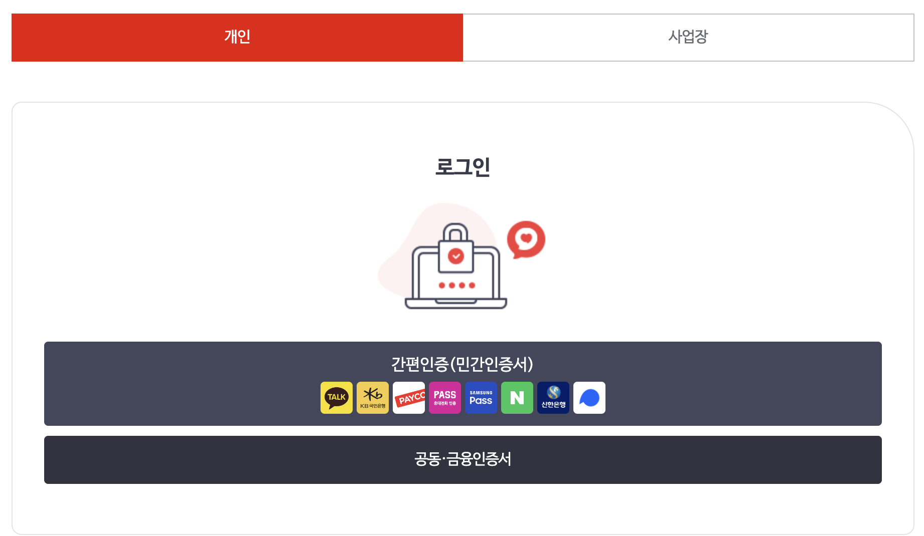 필수 입력 사항을 모두 적어 주신 후, 인증문자를 받으면 됩니다. 저같은 경우는 카카오톡 인증서를 이용하는 중이라 카카오톡으로 진행했습니다. 그러면 카카오톡으로 인증 요청 안내톡이 날라옵니다. 인증하기 버튼을 클릭하여 인증을 완료해주면 간단히 로그인 완료입니다.